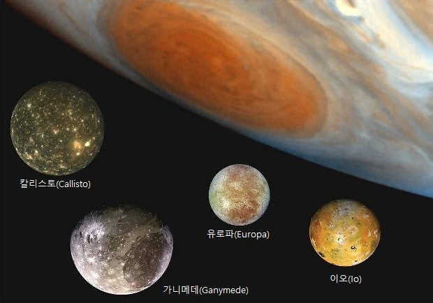 갈릴레이는 이전에 비해 천체를 잘 관찰할 수 있게 한 망원경을 이용해 1609년부터 1610년에 목성에서 4개의 위성을 발견했다. 이들은 목성의 위성 중 크기가 큰 천체이며, 이들 위성의 이름은 이오, 에우로페, 가니메데스, 칼리스토 등 제우스(즉 목성의 이름)의 연인의 이름을 따서 지었다(갈릴레이 위성(Galilean moons) 또는 갈릴레오 위성이라 부른다).