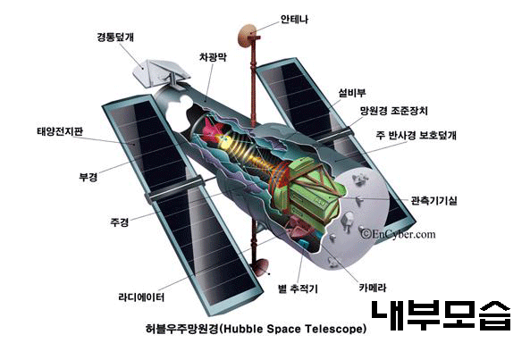 * 허블은 1921년 경 세페이드 변광성을 이용하여 우주의 크기를 재었다. 이 발견은 후에 할로 섀플리와 히버 커티스의 대논쟁을 종결하는 데 근거로 쓰였다. 그는 1929년 경 은하를 관측하여 스펙트럼의 선에 나타나는 적색 편이를 시선속도라고 해석하고, 후퇴하는 속도가 은하 간 거리에 비례한다는 허블의 법칙을 발표하였다. 이는 우주가 팽창한다는 사실을 뒷받침하여 이후 빅뱅 이론의 기초가 된다. 그의 발견 때문에 그는 여러 영예를 누렸다. 허블 우주 망원경은 그의 이름을 따서 명명하였다.