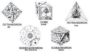 나머지 네 종류의 정다면체들을 당시 사람들이 세상을 구성하는 '4대 원소'로 여겼던 흙, 불, 공기, 물과 연관시켰으므로 정십이면체와 연관시킬 수 있는 대상이란 결국 하늘(내지 우주)밖에 없었을 것이라고 추측하고 있다.