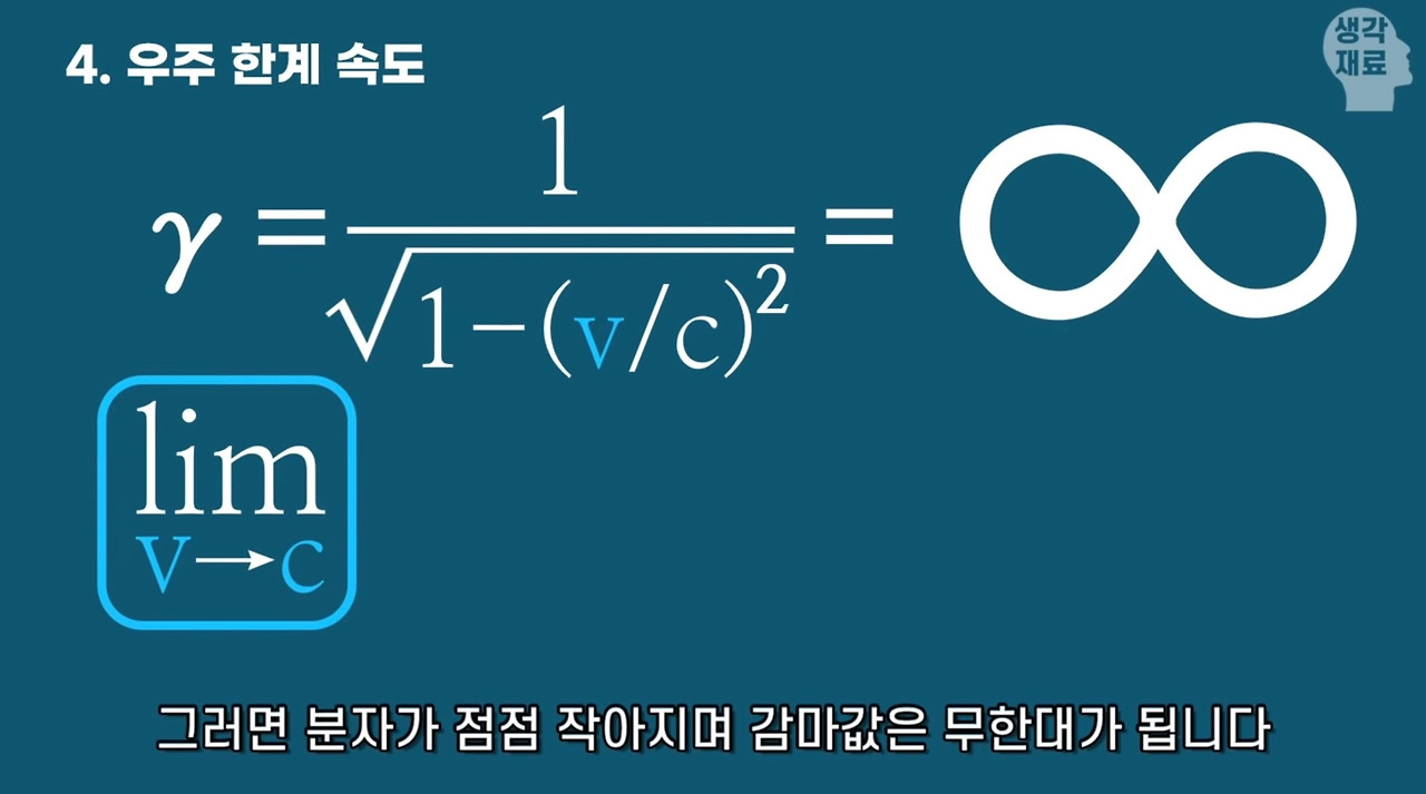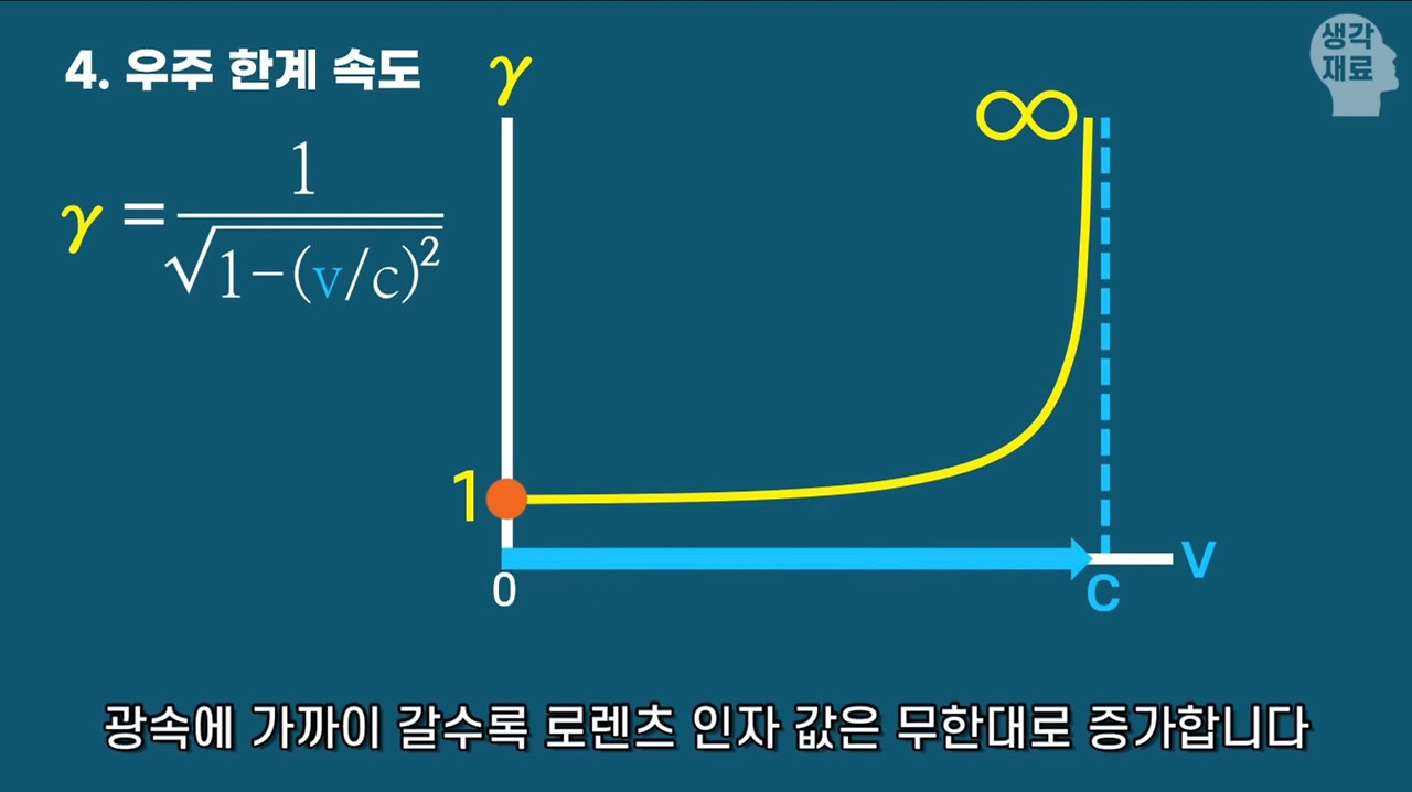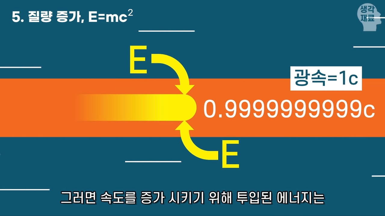 아래 질량-에너지 등가성의 원리와 함께 기본적으로 모든 물질은 빛보다 빠를 수 없고, 빛의 속도로 알려진 초속 30만㎞가 우주에서의 한계 속도라는 것이다.