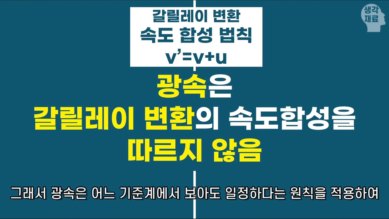 2) 진공에서의 빛의 속력은 어느 관성계에서나 일정하다(광속 불변의 법칙).