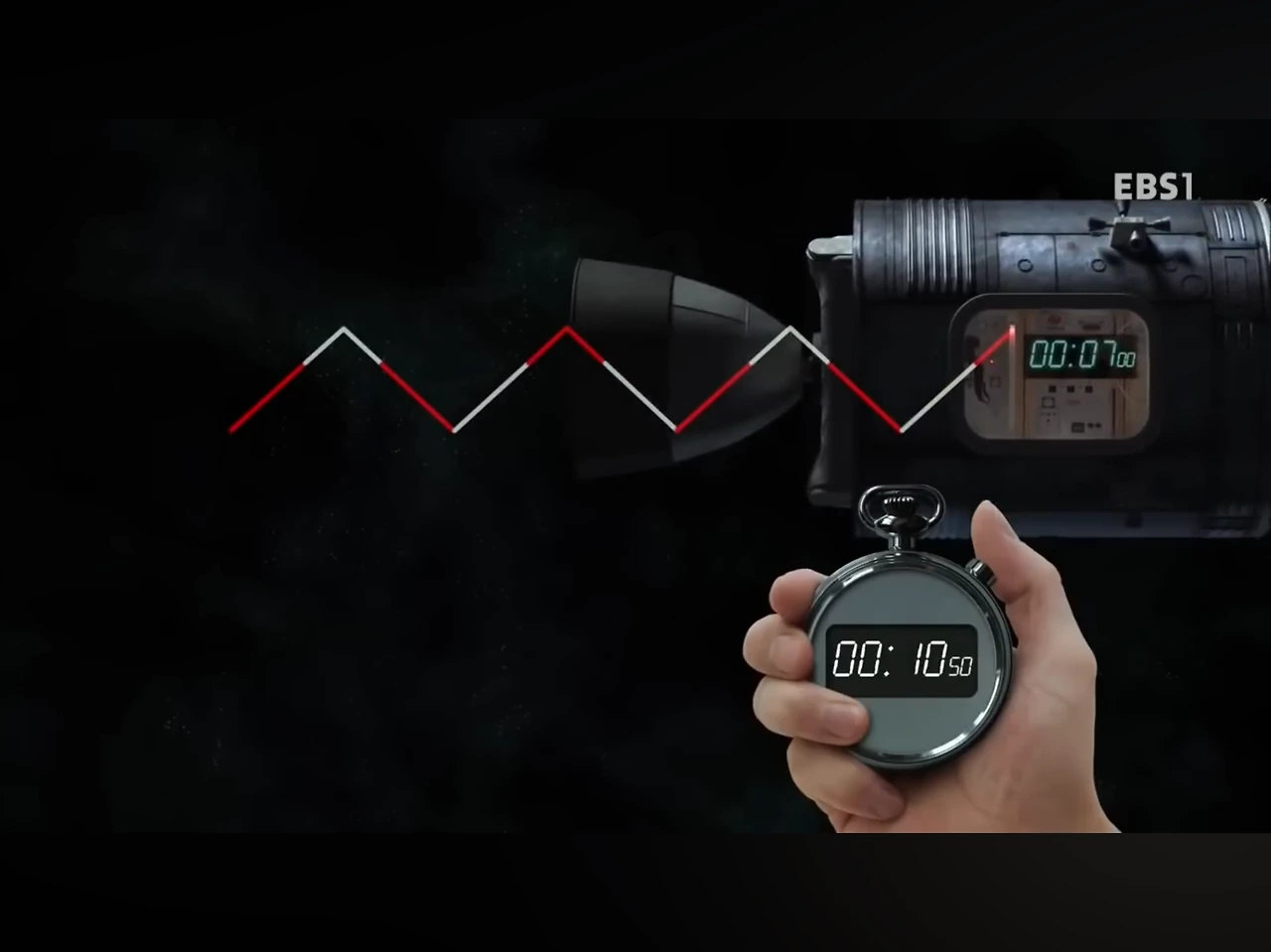 역으로 우주선 내에서 7초 동안 빛이 수직 상하 운동하는 사이 우주선의 이동으로 인해 밖에서는 빛이 포물선 모양으로 움직이면서 10초가 경과한다는 것이다.