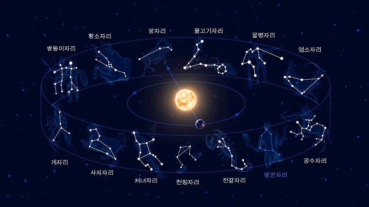 태양의 천구 상에서의 이동 경로를 황도라고 하며, 황도 근처에 있는 열두 개의 별자리가 이루는 띠를 황도대(zodiac)라고 부른다. ‘zodiac’은 ’zoo’에서 온 말이라고 한다.