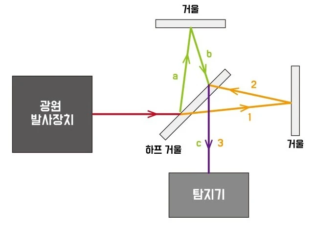 이와 비슷한 시점인 1887년에 미국에서 두 명의 물리학자 마이컬슨(Albert Abraham Michelson, 1852~1931)과 몰리(Edward Morley, 1838~1923)는 아래와 같은 실험을 통해 빛의 진행 방향에 상관없이 빛의 속도는 언제나 약 초속 30만 km로 일정함을 확인했다(원래 이 실험은 빛이 에테르를 매개로 움직이는 파동이라는 것을 증명하기 위한 실험이었으나 결국 그 부분은 실패로 끝났다).