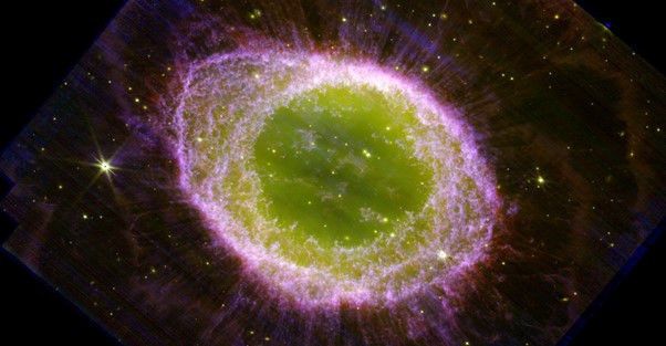 [참고] 별의 생애 마지막 모습이 제임스 웹 우주 망원경(JWST)에 담겼다. 영국 BBC에 따르면 영국 유니버시티칼리지런던(UCL)과 영국 맨체스터대의 공동 연구팀은 제임스 웹 우주 망원경의 근적외선 카메라(NIRCam)로 촬영한 고리성운(M57)의 사진을 (2023년 8월) 3일(현지시간) 최초 공개했다.