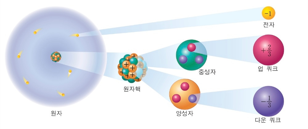 중성자가 발견된 것은 1932년이다. 양성자, 중성자, 전자의 구성비에 따라서 원자의 종류가 결정되고, 그 원자들이 적당히 모여서 분자들을 생성한다. 중성자는 전하를 띠지 않고 양성자와 전자는 똑같은 크기의 양전하와 음전하를 갖는다. 부호가 다른 전하들 사이에 작용하는 인력이 원자를 원자로 남아 있게 하는 요인이다.