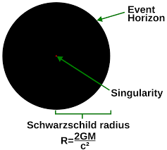 이 블랙홀은 무한히 큰 질량이 한 점에 모여 있고 그 주변에 구면 경계가 있는데, 그 구면을 '사건의 지평선(event horizon)'이라고 하고 구면의 반지름을 '슈바르츠실트 반지름'이라고 한다. 만약 태양과 같은 질량을 가진 블랙홀의 슈바르츠실트 반지름은 약 3km 정도 될 것이라고 한다.