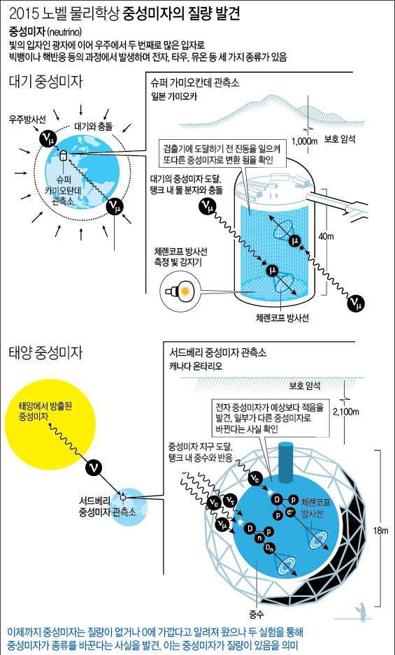 우주를 구성하는 기본 입자 중 하나인 중성미자는 우주에서 빛 입자인 광자 다음으로 많다. 태양 중심부에서 핵융합 반응 때 나오는 중성미자는 매초 700억 개가 엄지손톱만 한 면적을 지나가고 있지만, 우리는 전혀 느낄 수 없다.