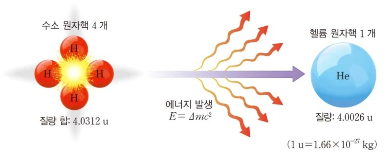 태양은 방출되는 광도를 충당하느라 중심핵에서 매초 4억 톤의 수소를 헬륨으로 변환한다고 한다. 별 하나하나가 빛을 낼 수 있는 것은 그 별 내부에서 핵융합 반응이 이루어지고 있기 때문이다.