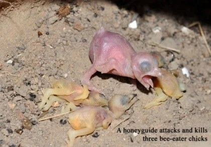 탁란 습성을 가진 새가 실제로 공갈 협박 전술을 사용한다는 증거는 없다. 그러나 그들이 잔인하다는 것은 확실하다. 꿀잡이새(honeyguide)도 탁란을 하는데 그 새끼는 부화하자마자 다른 수양 형제를 마구 베고 쪼아서 죽여 버린다고 한다;;;