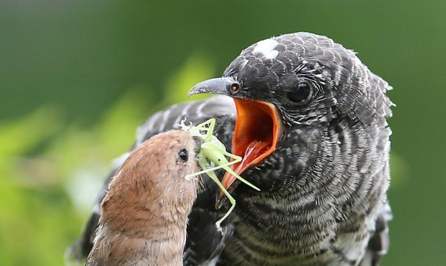 뻐꾸기 새끼가 벌린 빨간 입은 너무도 유혹적이어서, 조류학자들이 남의 둥지에 앉아 있는 뻐꾸기 새끼의 입에 먹이를 넣어 주고 가는 어미 새를 보는 것은 어려운 일이 아니다. 이 새는 자기 새끼에게 줄 먹이를 물고 집으로 가는 중이었을 것이다. 갑자기 시야 한구석에 전혀 다른 종류의 새 둥지 속에 있는 뻐꾸기 새끼의 시뻘건 입이 들어온다. 이 새는 방향을 바꿔 다른 새의 둥지로 날아가 자기 새끼에게 주려던 먹이를 뻐꾸기의 입속에다 넣어 준다.