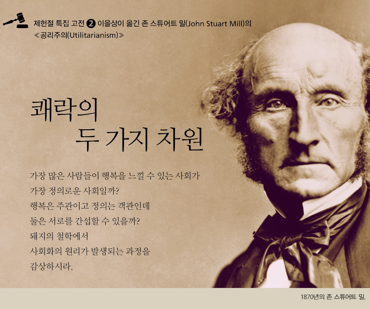 존 스튜어트 밀(1806~1873)은 그러한 반박에 답할 수 있다고 믿었다. 벤담보다 한 세대 뒤에 태어난 밀은 계산 원칙에 초점을 맞추기보다는 공리주의를 보다 인간적으로 재구성함으로써 공리주의를 구하려고 노력했다. 밀은 벤담의 친구이자 제자인 제임스 밀의 아들이다.