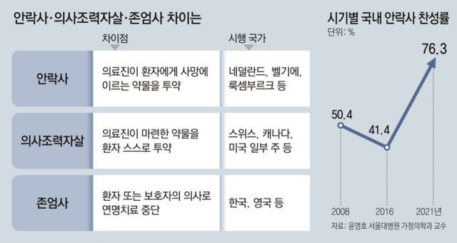 하지만 안락사 허용에 찬성하는 사람이라고 해서 반드시 그 논리에 기대는 건 아니다. 대부분은 심각한 고통에 시달리는 말기 환자들을 극심한 고통 속에 연명하도록 두기보다는 스스로 죽음을 앞당길 수 있도록 해야 한다고 판단하기 때문이다.