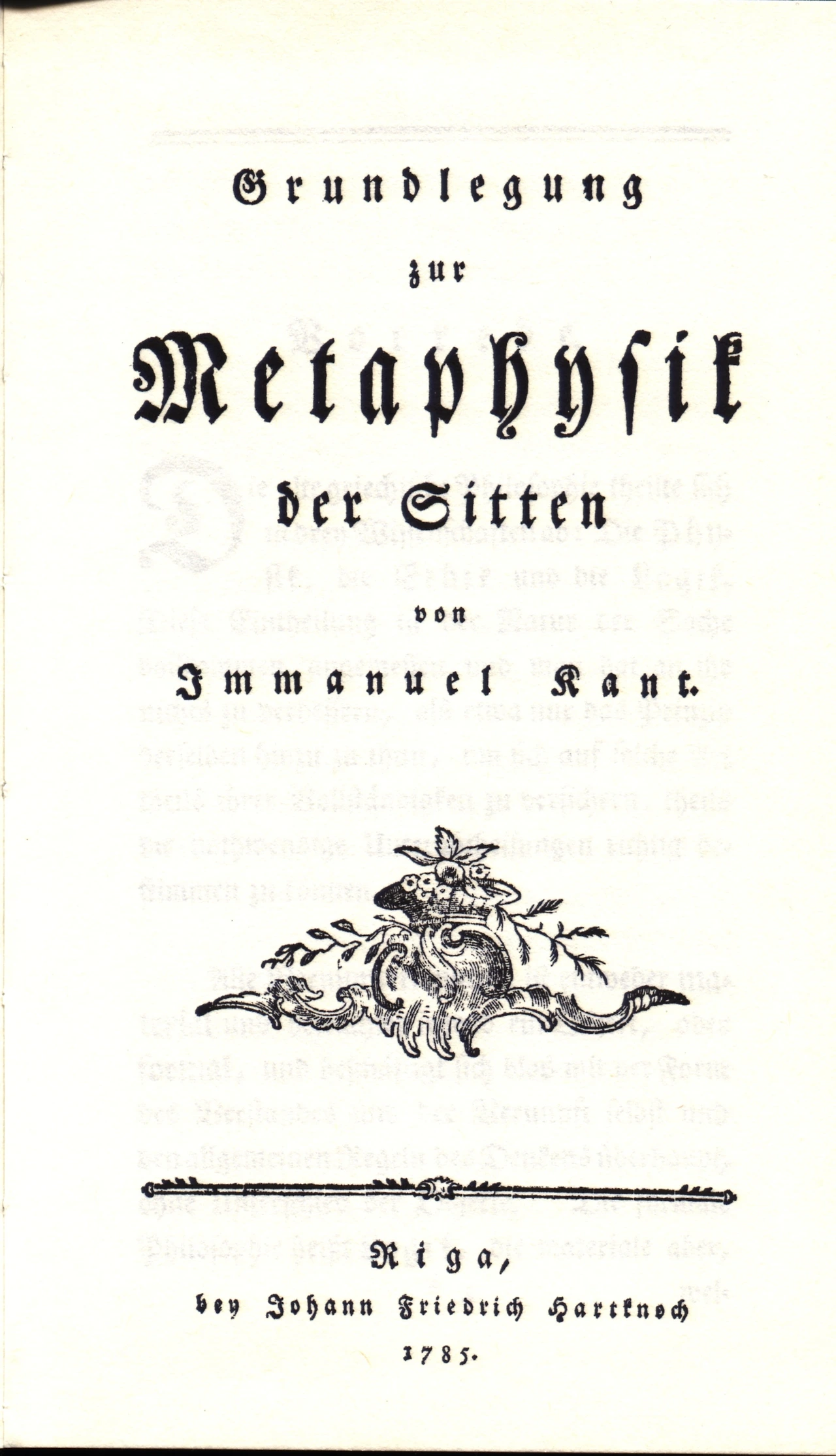 그리고 4년 뒤(1785)에는 도덕 철학에 관한 여러 저서 중 첫 번째인 《도덕 형이상학의 기초(Groundwork for the Metaphysics of Morals)》를 출간했는데, 위 책에서 그는 제러미 벤담의 공리주의를 신랄하게 비판했다. 그는 도덕이란 행복 극대화나 그 밖의 어떤 목적과도 무관하다고 말했다. 대신 도덕은 인간 그 자체를 목적으로 여기고 존중하는 것과 관련 있다고 주장했다.