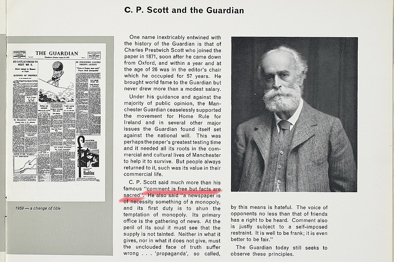 이는 역사는 확인된 사실들을 모아 놓고 자기 마음에 드는 방법으로 요리(해석) 하여 내놓는 것이라는 입장이다. 이것은 자유주의 저널리스트 C. P. 스콧의 유명한 격언을 상기시킨다. ‘사실은 신성하며, 의견은 자유롭다(Facts are sacred, opinion(원문은 comment) is free).’