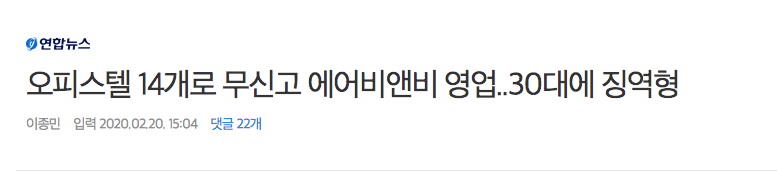 사람은 누구나 실수를 저지른다. 그리고 그중 무지로 인해 실수를 저지르는 경우가 다반 수임을 잘 알고 있다. 이 글을 쓰는 본인 역시 분명 삶의 어떤 부분에서 위법이나 범법을 행하고 있으리라 짐작한다. 하지만 오피스텔 14개를 빌려 관할기관에 신고도 없이 에어비앤비라는 선한 서비스의 의도를 악용하여 부가가치를 창출하려 하는 위와 같은 행위는 분명, 의도적이었기에 비난을 받고, 처벌받아 마땅하지 싶다. 서비스의 본사가 한국이 아니었기에 당국의 제재가 힘들다는 법의 허점을 분명 인지하고 이를 이용하리라 결심했으리라 짐작하는 것 역시 지나친 논리의 비약은 아니겠다.