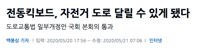이번 결정이 얼마나 큰 것을 얻을 수 있는지를 확언할 식견을 갖추지 못한 본인이지만 킥보드가 지금보다 훨씬 골치아픈 도로의 무법자가 될 수 있겠다는 것은 쉽게 예측이 가능하다. 얼마되지 않는 자전거 도로를 운행할 수 있다는 점은 킥보드가 차도만을 주행해야했던 기존 제도에서의 위험성을 일정부분 상쇠할 수 있을지도 모르겠지만 우리 주위의 자전거 도로는 그 환경이 매우 열악함을, 자전거 도로를 존중하지 않는 수 많은 자동차 운전자들로 인해 안전하게 이용할 수 없음은 우리는 잘 알고 있다. 그리고 그 수많은 운전자중에 본인 역시 포함됨을 고백하며 반성한다.