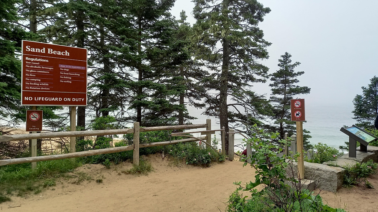 메인주의 대부분의 해안과 달리, 샌드 비치의 모래는 무수히 많은 조개껍데기의 파편으로 이루어졌다. 따개비, 홍합, 성게가 세월 속에서 부서지고 다듬어져, 모래 보다 더 모래 같은 샌드 비치가 생긴 것이다. 이런 샌드 비치가 존재하는 것은 우연이 절묘하게 겹쳐서 일어난 자연 현상이다.