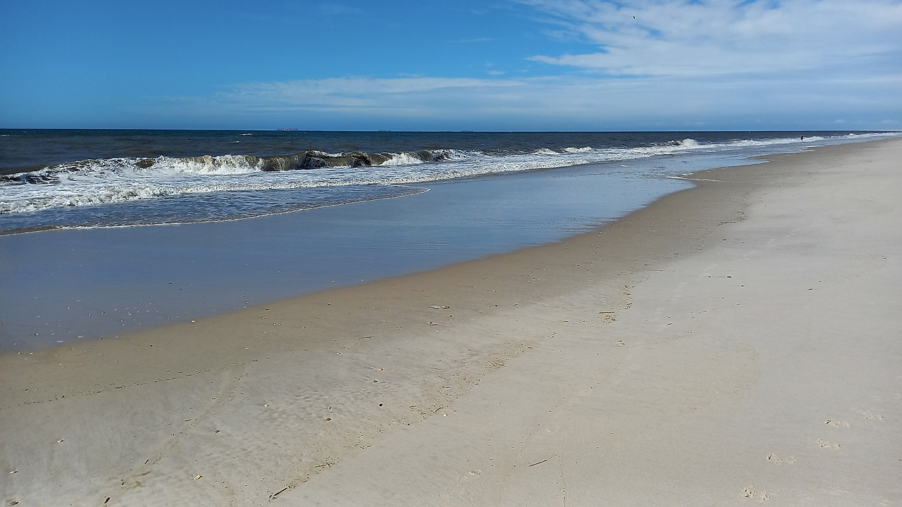 파도가 일렁이는 존스 비치 모래사장 해안가