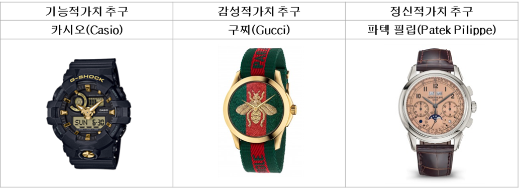 예를 들면 1,000만 원을 호가하는 명품 시계나 수백만 원대의 고급 패션 시계도 기능적 측면에서는 10만 원대의 전자시계를 쫓아가지 못한다. 따라서 기능을 중요시하는 고객에게는 수백만 원짜리 명품 패션 시계보다는 10만 원짜리 전자시계가 훨씬 더 가치 있는 제품이 되는 것이다.