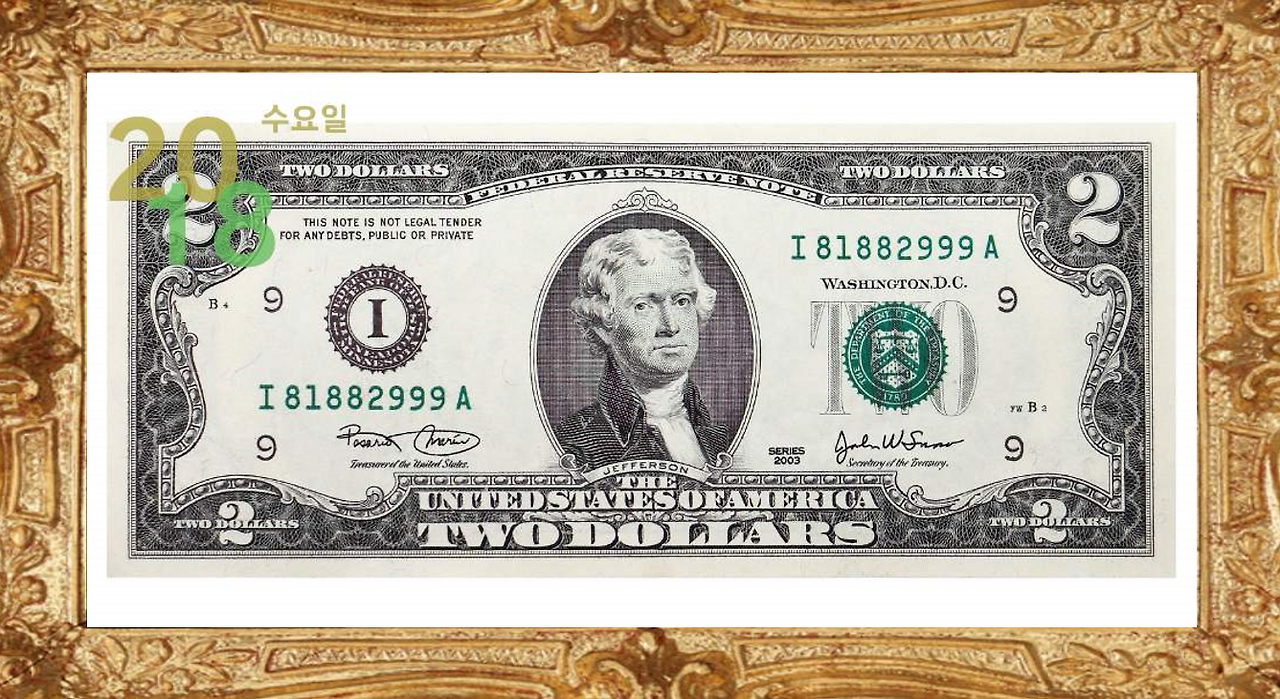 재미 삼아 행운을 부른다는 2달러 지폐도 전자 앨범에 한번 넣어 봤습니다.