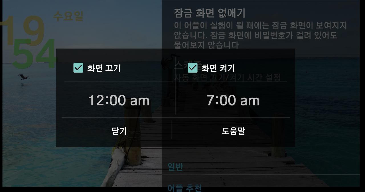 4) 설정 메뉴에 있는 타이머 기능을 이용하여 화면이 켜져 있는 시간을 지정할 수도 있습니다.