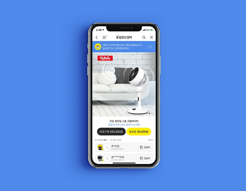 바로 구매할 수도 있지만, 여럿이 모이면 더 할인하고 적립까지 더 해주는 서비스.