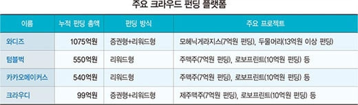 와디즈는 증권형도 포함하고 있어 펀딩금액 규모가 나머지 두 기업보다 클 수밖에 없으니 사실상 3개 기업의 차이가 크게 존재하지 않는다.