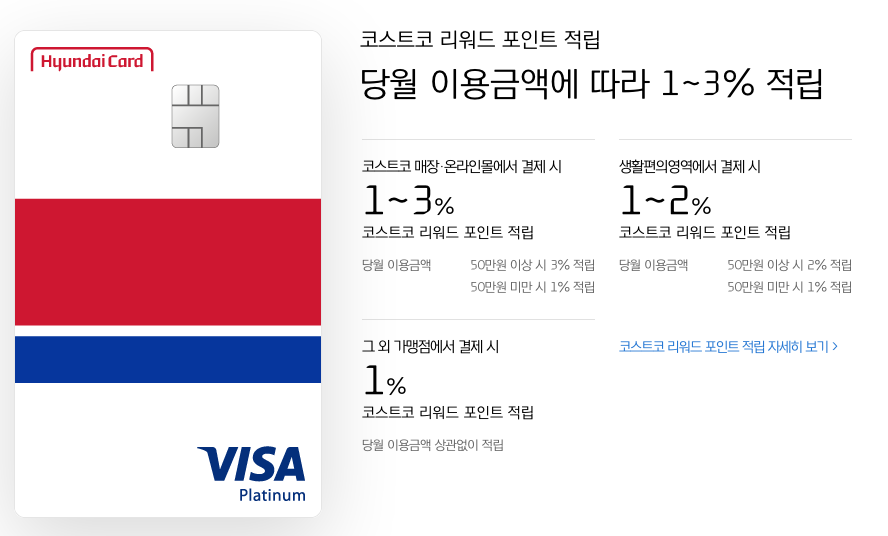 지금 위에 보이는 코스트코X현대카드는 기존 코스트코X삼성카드보다도 혜택이 높은 수준이다.