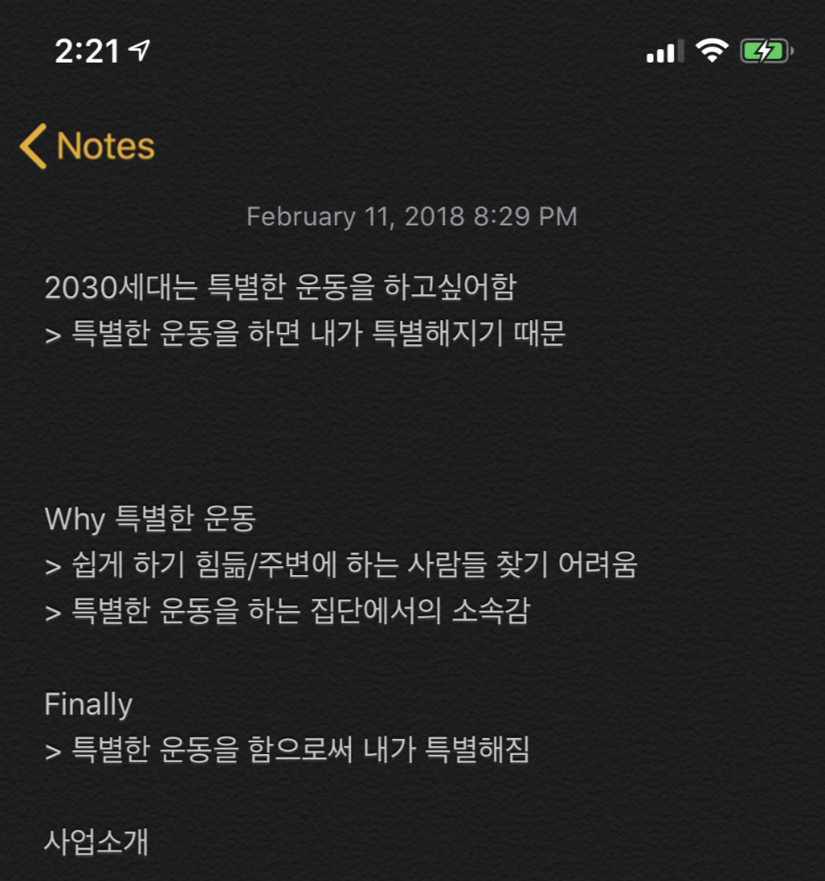 여행 중 느꼈던 감정을 필기해보기도 했고, 갑자기 떠오른 서비스에 대한 why/finally를 써보기도 했다. 이런 활동이 처음엔 웃기기도 했다. 쓰다 보면 '이거 나중에 보기나 할까?'.