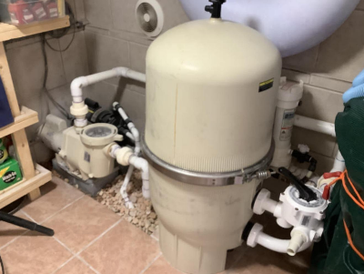 두개의 펌프와 하나의 대형 필터, 케미컬 투입 조절기까지 수영장 옆 filter room 은 복잡한 파이프와 기기로 한가득이다.