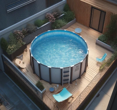 Above ground pool. 좀 더 크고 튼튼하기는 하지만 기본적으로 공기 넣어 만드는, 애기들이 물장난 하는 임시 풀과 같은 개념이다.