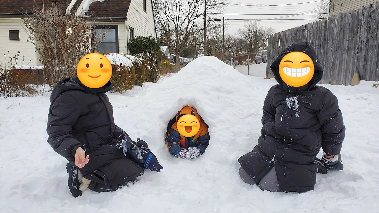 이 사진을 볼 때마다 막내는 정말 복받은 것 같다는 생각을 합니다. 형들이 만들어준 이글루라니! 처음으로 형들이 여러 시간에 걸쳐 눈집을 만들고 '네 거야. 들어가봐.' 라고 했던 순간 막내의 표정을 저는 잊을 수 없습니다.