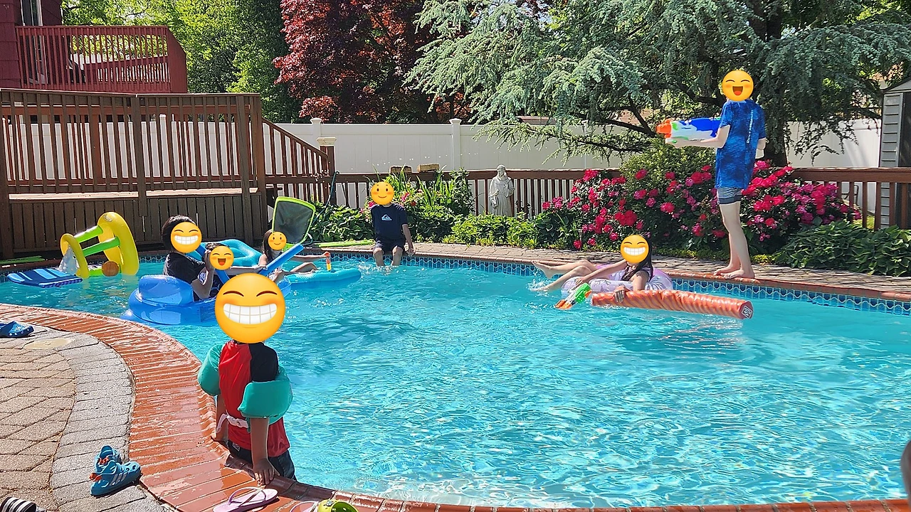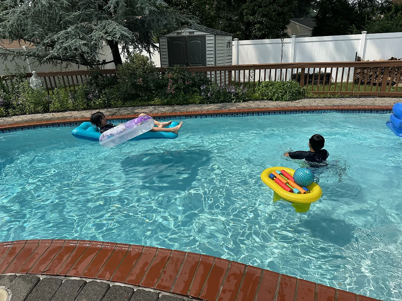 유난히 더웠던 이번 여름, 아이들에게 뒷마당 수영장은 오아시스였습니다. 정말로 뜨거운 날들이 며칠씩 이어지면 수영장 물도 미지근해지는 경우가 있었지만 대부분은 저희집 삼형제들끼리 혹은 친구들을 불러 시원하게 물놀이를 즐겼습니다. 특히나 물을 좋아하는 막내는 형들이 나오지 않더라도 혼자 pool에 들어가 한두시간씩 놀다 오기도 했는데 덕분에 보초를 서느라 아내와 저 둘 중 한명은 그 시간 수영장 옆에서 늘어져 있기도 했죠.