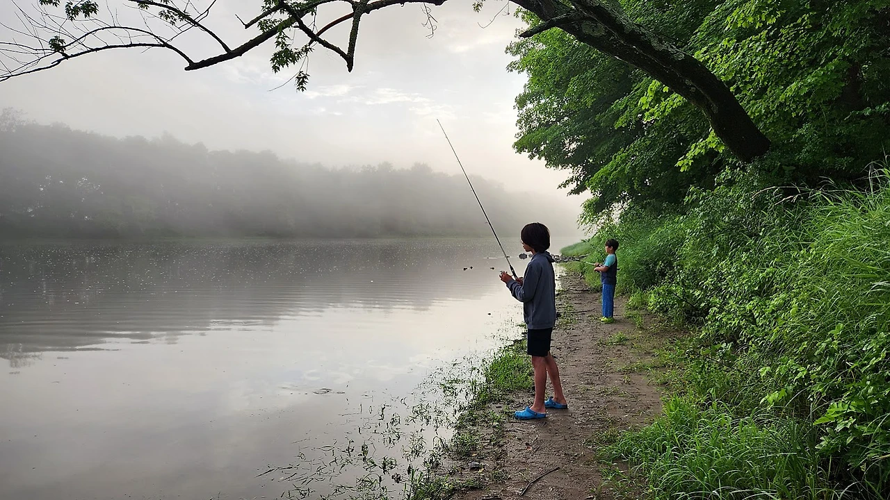 낚시는 삼형제가 함께 하는 유일한 스포츠입니다. 힘이 약하고 키가 작은 막내도 형들과 대등하게 즐길수 있으니까요. 첫째는 약간 강태공 모드로 낚시를 하지만 둘째와 셋째는 낚시 대회 모드라 캠핑을 가면 해가 뜨기도 전에 일어나 아침 낚시 가자고 해서 늦잠을 잘 수가 없습니다.