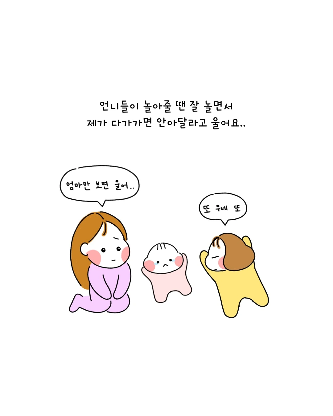 다른 사람들한테는 예쁘게 웃어주고 옹알이도 해주는데 저만 보면 울어요.. 멘탈 탈탈탈ㅏㄹㄹ