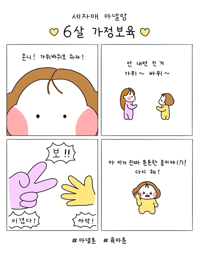 저도 가위바위보 진짜 못 하는데 이것도 유전이 되나 봐요 ><