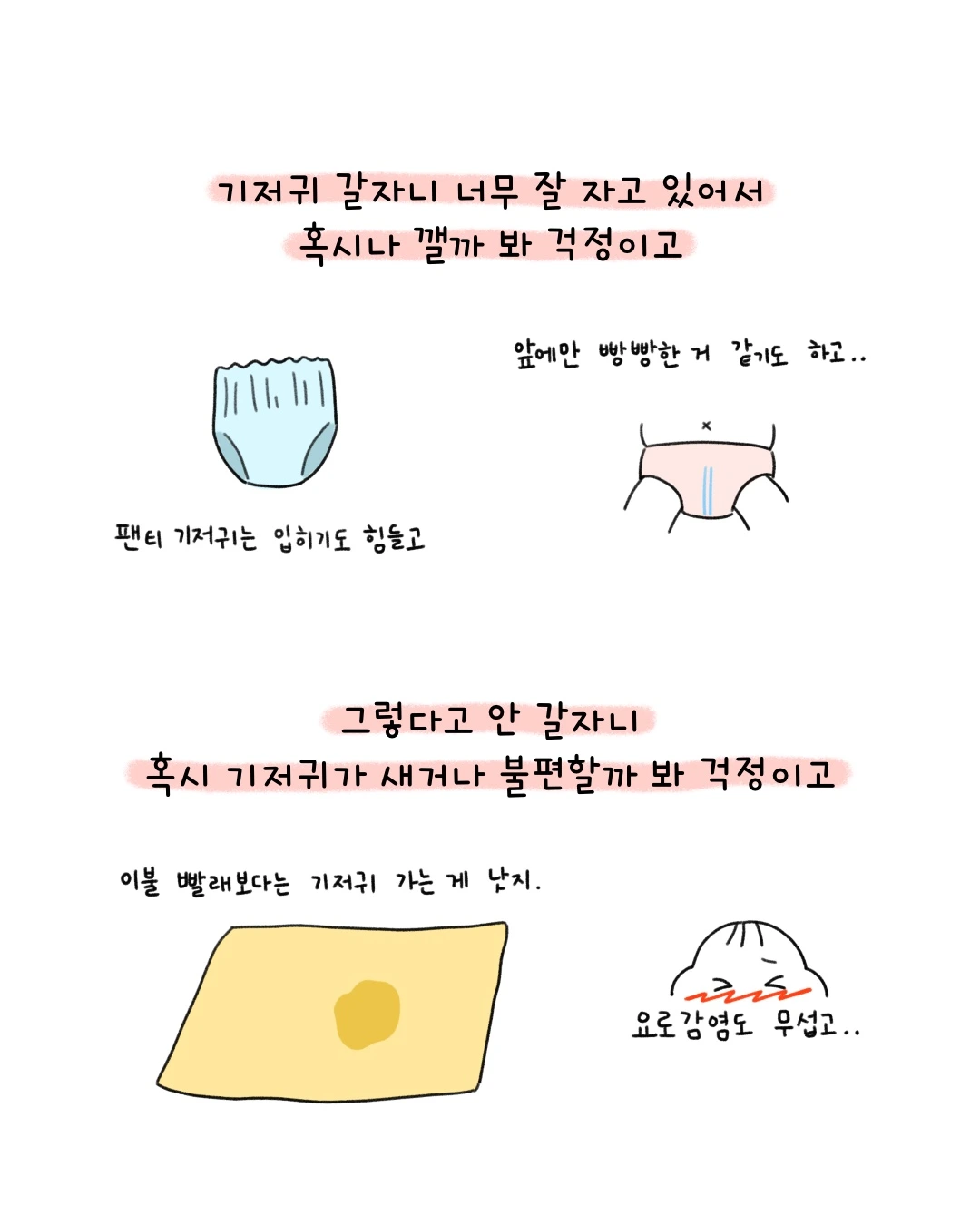 새벽에 기저귀 갈기 VS 기저귀 안 갈기