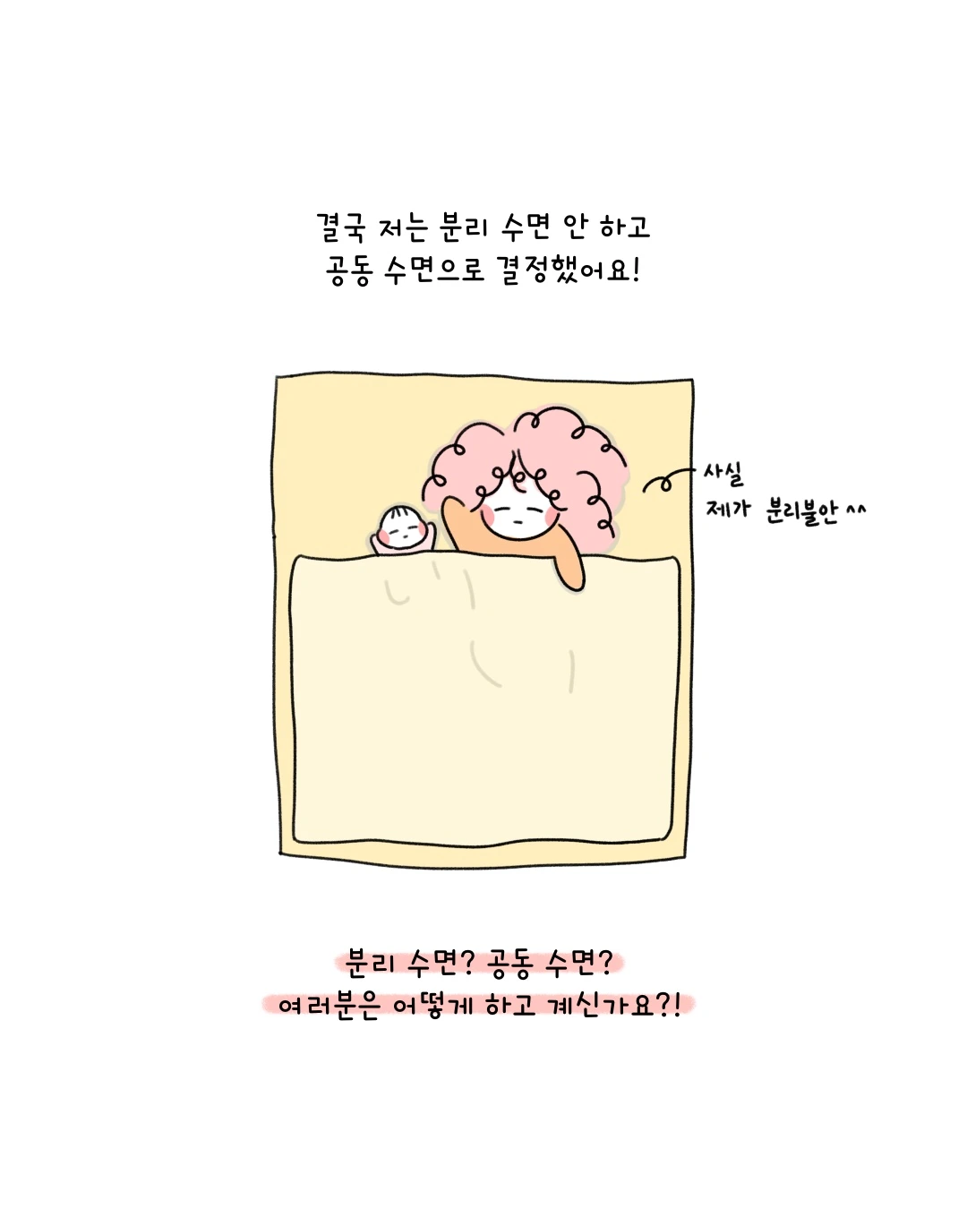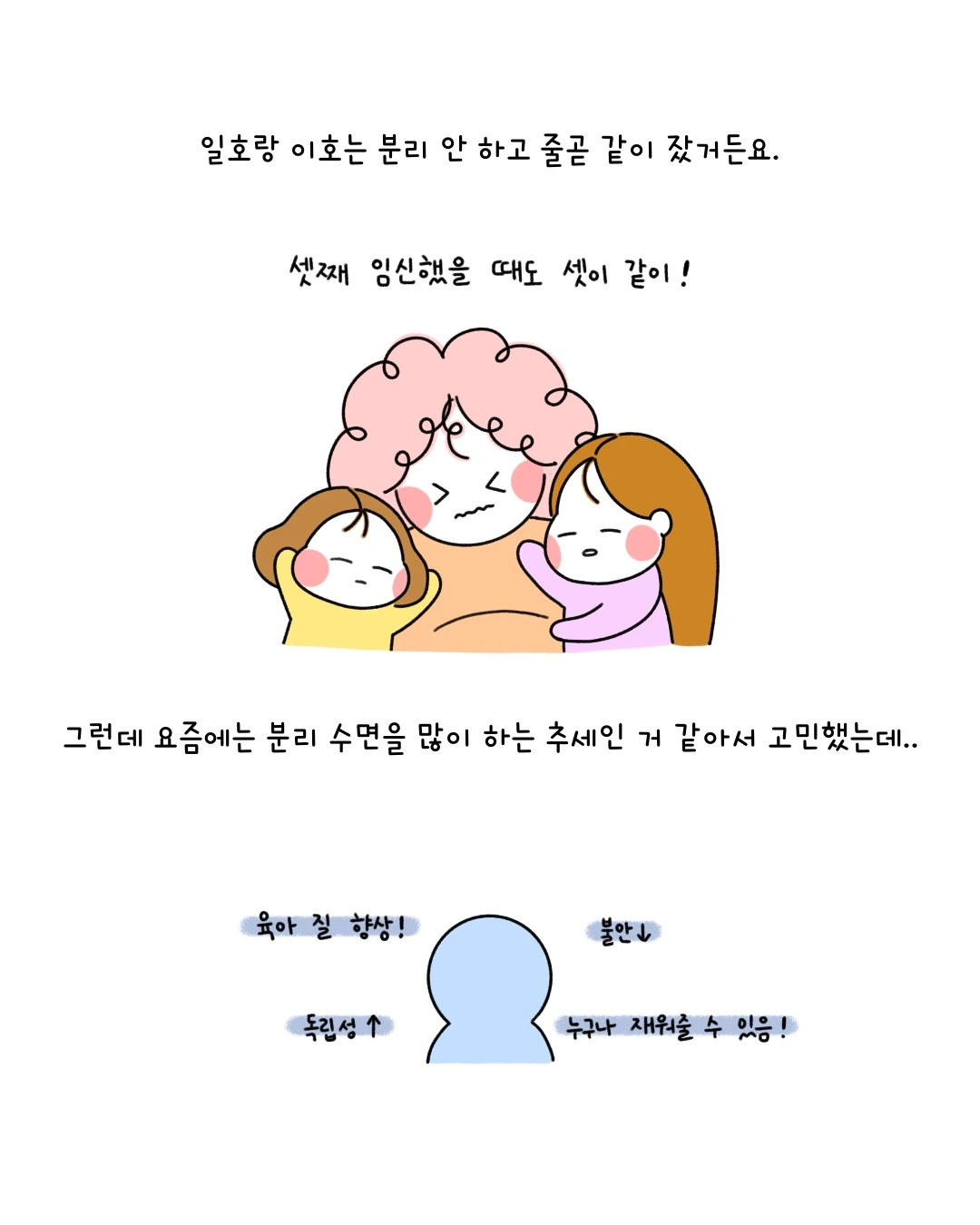 그런데 분리수면하는 다른 분들 보니 엄마빠 수면의 질과 육아 멘탈 케어에 좋겠다 싶더라고요
