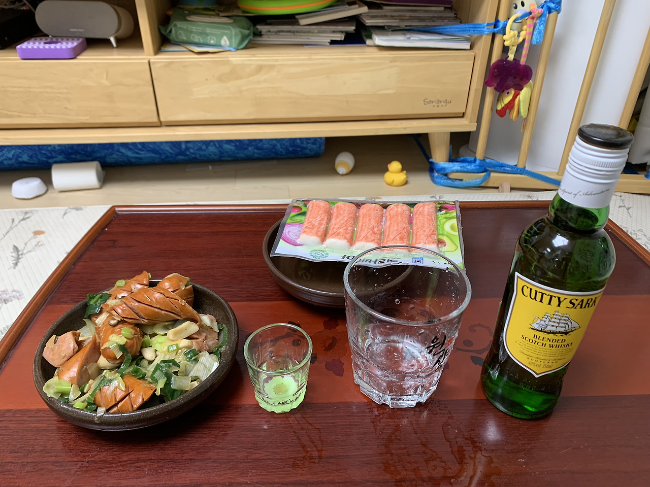 아침에 교회를 가는 길에 어머니께선 소은이가 보고 싶다며 갑자기 아이를 맡기라셨고, 그러므로 우리는 감사하게도 교회에서 느긋하게 점심을 먹고 처가 일을 보러 신촌을 갔다가 아내가 단둘이서 바깥 공기를 느껴보고 싶다며 젊은 대학생들이 있는 거리를 걷다가, 이름이 그럴듯한 까페에서 그냥 조용히 커피를 마시다가, 그리고 나는 연말맞이 구천구백원까지 가격이 떨어진 먼지 낀 커티 삭 한 병을 책 사이에 끼워 데려왔던 것이다. 아내는 또 술이냐며 어이없이 웃는듯 하면서도 그제도 어제도 그리 많이 마시지 않았으므로 소시지를 사다가 채소와 볶아 소금 후추로 간을 해주고, 게맛살을 손수 잘게 찢어주고, 파인애플 껍질을 깎아낸뒤.토막쳐 차갑게 식혀주었다.