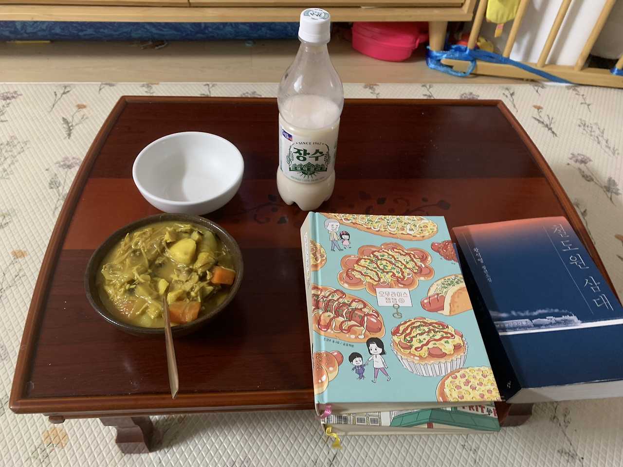 아내와 아이가 없는 동안, 또한 이번 승단심사에서 정말이지 준비가 부족하여 죽을 쑤었기에, 집에서 혼자 술은 아니 마시리라 하였는데, 우리 부부 없는 새에 아버지께서 드시다 남기신 서울 막걸리 한 병이 유통기한 사흘 넘긴 채 오도카니 냉장고에 앉아 있었다. 이미 너가 불러다 해창막걸리 두 병을 안긴데다, 화학소주를 마셨으면 마셨지 사카린 넣은 막걸리는 내 취향이 아니다. 다만 막걸리가 외롭고 서러울까봐 어머니가 해주신 반찬들 데우며 그냥 비웠다.