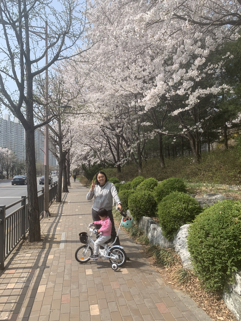 정작 날짜가 주로 잡힌 벚꽃축제 일정보다, 더워진 지구를 상징이라도 하듯, 한 주 더 앞당겨 벚꽃이 흐드러지게 피었으므로, 나와 아내는 좋았다. 아이가 좋아하는 비누방울을 자전거 앞 바구니에 싣고, 사람들을 헤쳐 지나가며, 천변 근처 벚꽃들을 마음껏 보고 왔다. 아이들의 세상이었고, 처녀총각들의 세상이기도 했다. 아이는 지금도 눈에 선연할 정도로 초여름 같은 뙤약볕 아래서 노래부르고 춤추고 비눗방울을 만들며 신나게 놀았다. 나는 술을 마시고 싶었으나 그럴 겨를은 없었고, 아내와 교대로 소은이를 따라 뛰고 달리면서 아이가 행여나 공원의 자전거나 다른 아이들과 부딪히지 않을까 살폈다. 벚꽃놀이가 아니라 벚꽃훈련이었다. 그래도 즐거웠다.