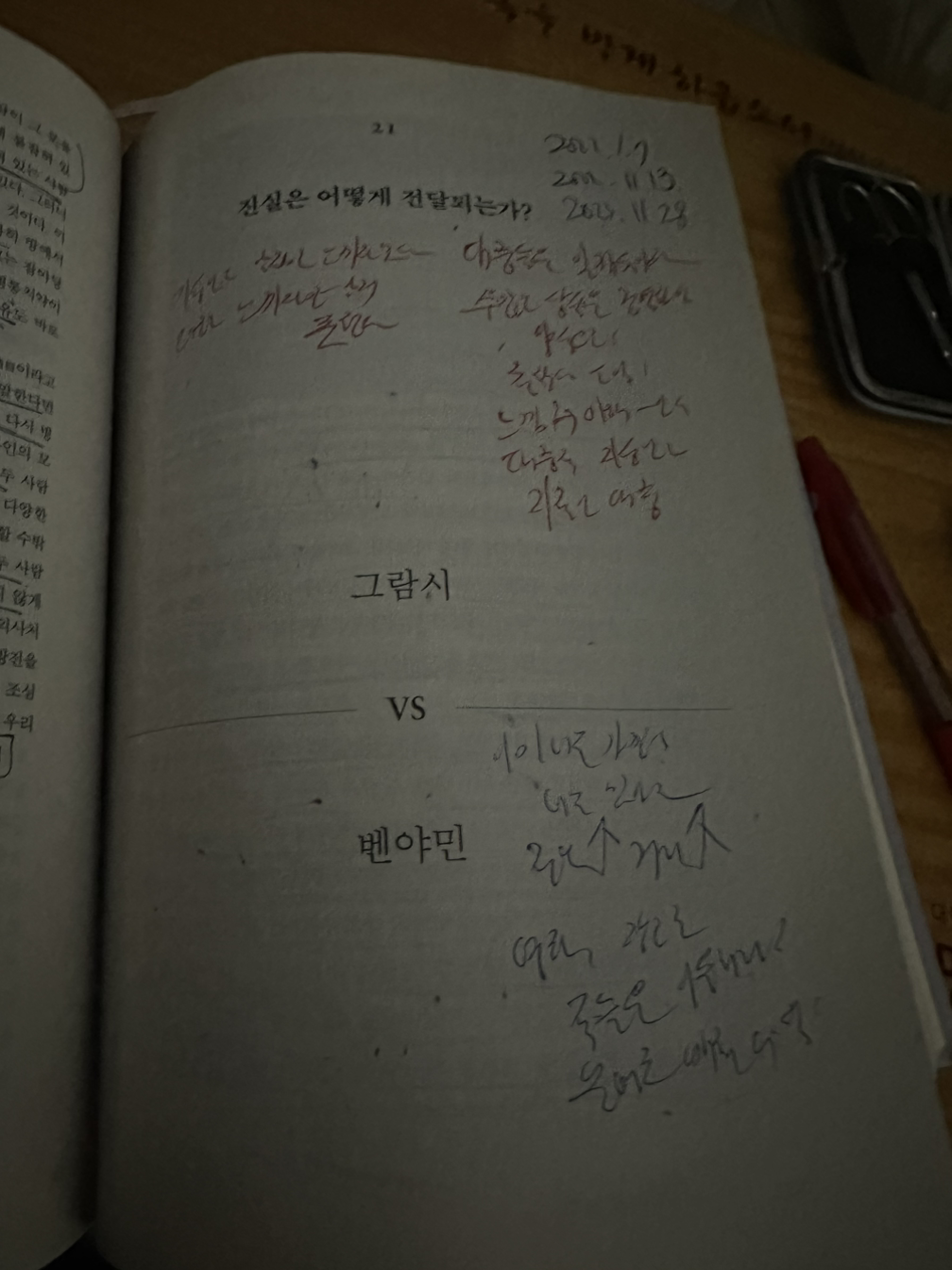 무솔리니 독재정부의 야심을 단번에 꿰뚫어보아 검사로부터 “20년 이상 가두어 그 영향을 없애야할 위험한 두뇌” 라고 불렸던 그람시는, 대중적 지성인과 지적인 대중이 서로 만나는 사회를 꿈꾸었다. 그에게 있어 대중은 느끼지만 인식치 못하는 이들이었고, 지성인은 인식하지만 느끼지 못하는 이들이었다. 그는 맑스의 하부 결정론의 한계를 알았고, 상부구조로서의 문화의 위력을 알았다. 그가 만약 옥중에 있지 않았다면 그 유명한 옥중수고는 없었어도 사회주의는 어쩌면 지금 우리가 아는 형태와는 달랐을수 있다. 베냐민은 이에 더하여 넘쳐나는 정보의 홍수 속에서 지치고 무감해져 냉소적으로 변할 이기적인 대중을 예견했고, 그들을 일깨우기 위해 영화와 광고의 힘을 사용해야 한다고 했다.