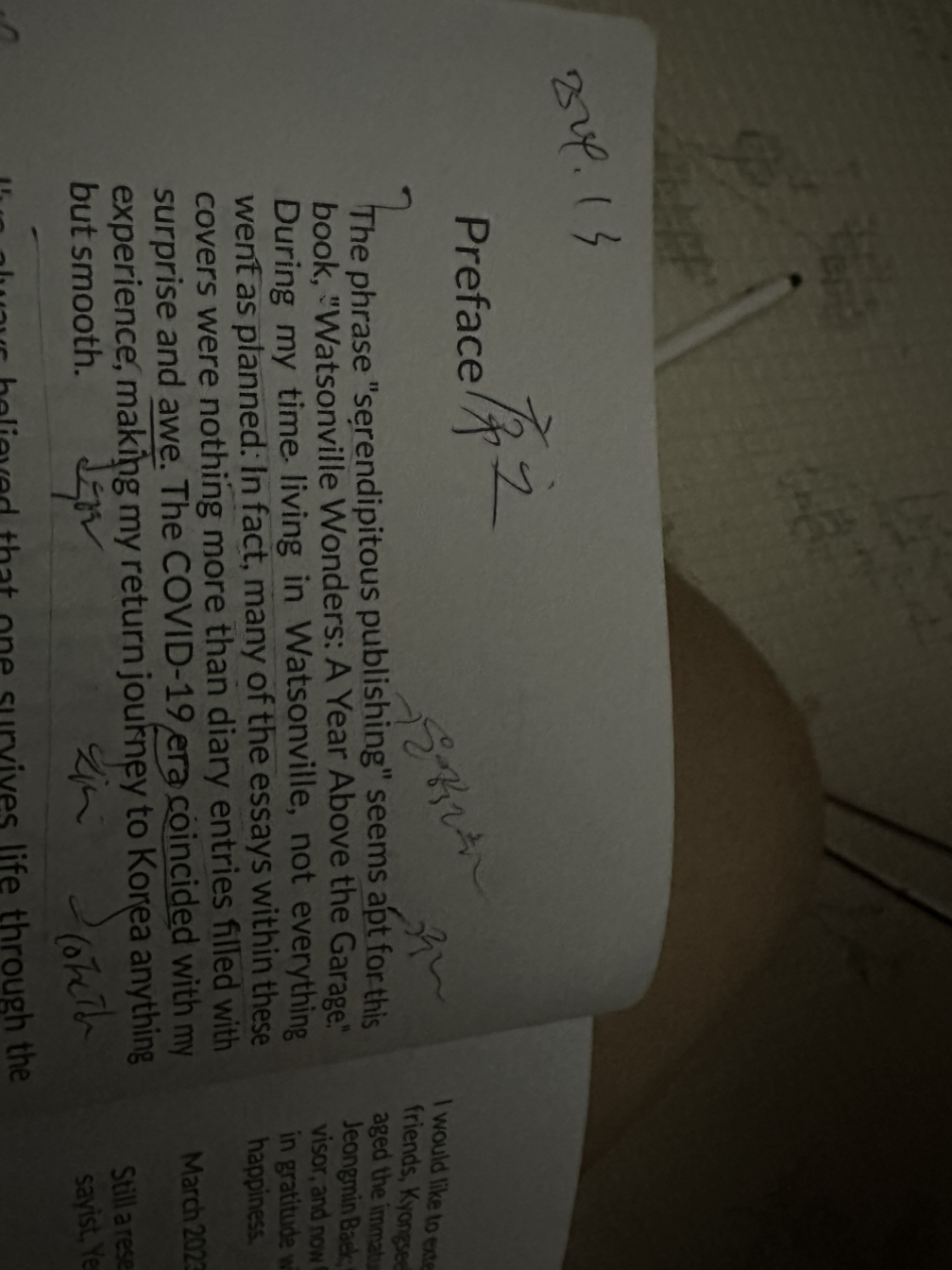 The phrase "serendipitous publishing" seems apt for this book, "Watsonville Wonders: A Year Above the Garage." During my time. living in Watsonville, not everything went as planned: In fact, many of the essays within these covers were nothing more than diary entries filled with surprise and awe. The COVID-19 era coincided with my experience, making my return journey to Korea anything but smooth