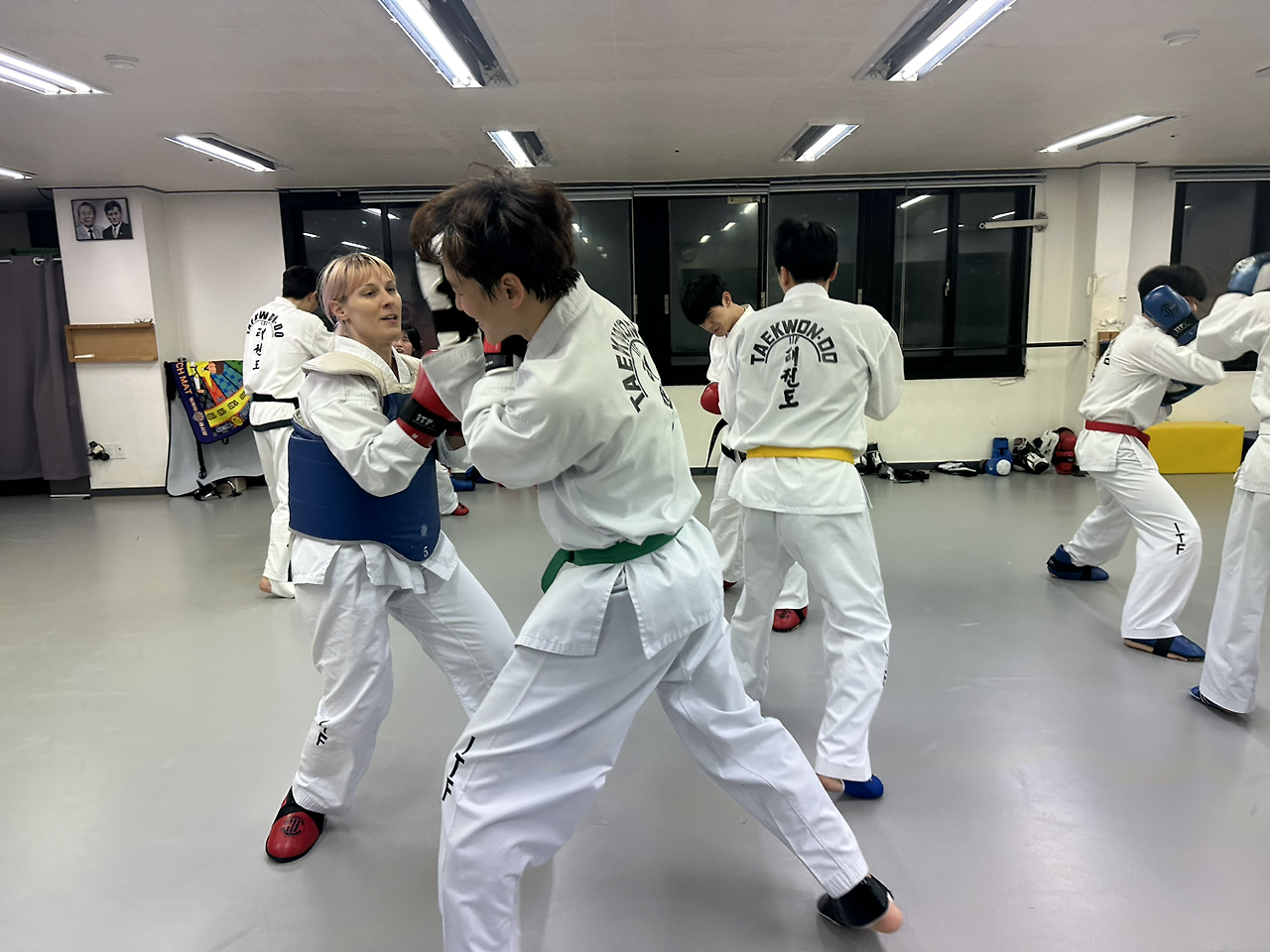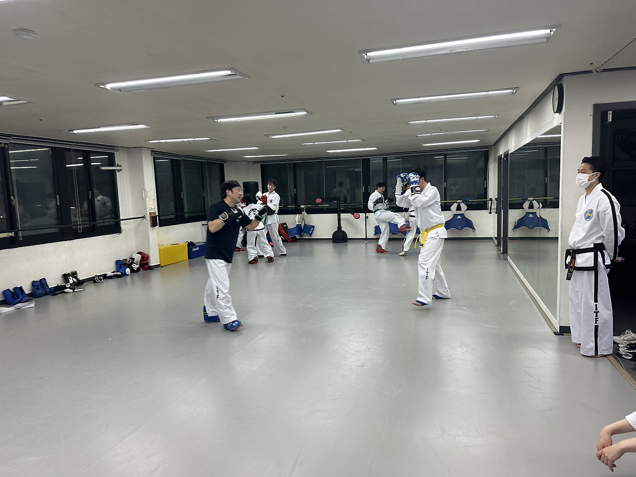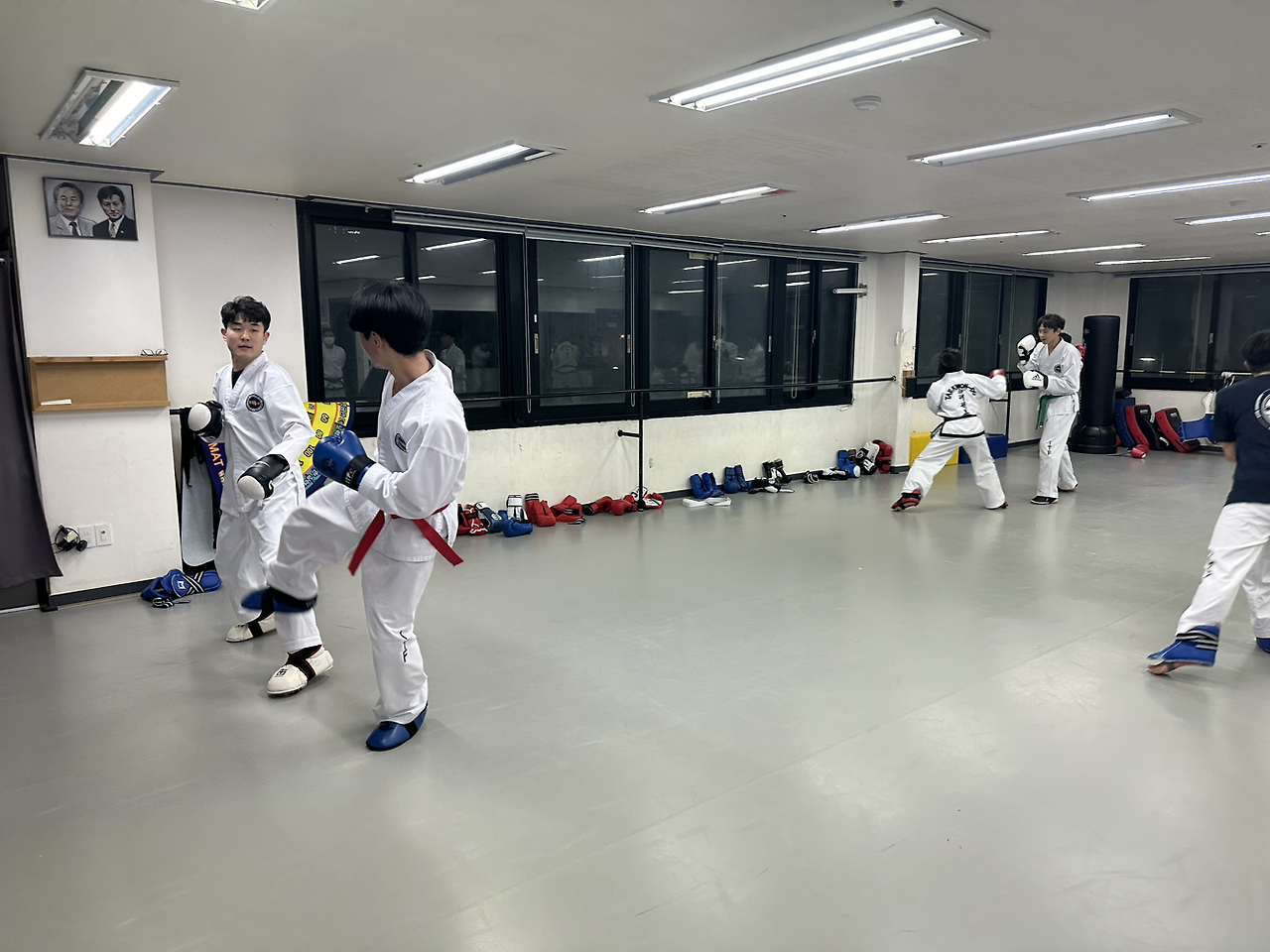 그리하여 대신 오늘 오랜만에 평일 저녁 사범님 지도.아래 맞서기를.했다. 콜라 부사범.제외하면 모두 건장한 남자 사제들밖에 없어 콜라 부사범에게는 호구를 입혀주고 낮게 차기까지 포함하여.신나게 치고받았다. ITF 국제 규칙이야 팔꿈치, 무릎 없이 가운데, 높은데, 즉 허리 높이 이상만 치고 찰수 있지만, 사실 평소에는 훨씬 더 다양한 기술을 연습한다. 아무래도 낮게 차게 되면 폴짝거리다 발이 걸리거나, 쓸어차기에 그대로 넘어가게 되므로, 빠르게 움직여도 발바닥이 미끄러지듯 움직여야 한다. 무에타이를 하다온 사제도 있었고, 국기원 태권도의 고단자도 있어 글러브를 낀 주먹은 그렇다쳐도 일부러 발등 보호대를.차지 않은 내 양발등은 퉁퉁 부었다. 심지어 내가 앞차부수기를 찰때 상대방이 뛰어뒤돌려옆차찌르기를 차는 중심과 서로 걸려서 발목이 꺾였지만 그래도 즐겁다. 서로 예상하지 못하는 움직임을 예상하려 애쓰며, 규칙에 따라 치고받는 맞서기는 혼자서 연습하는 틀과는 또다른 박진감과 흥분이 있다.
