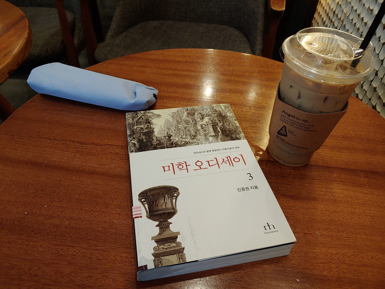 아이 이유식 값을 벌기 위해 휴일에도 출근하는 아비를 보았는가... 다만 아침 어학원은 쉰다는걸 깜빡.. 2시간 정도 붕 뜬 김에 두유라떼와 함께 하는 미학 오디세이 대망의 3권!! ㅜㅜ