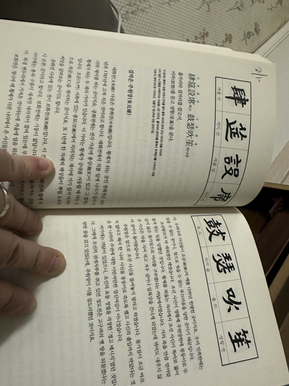 ㅡ 북창 정렴은 정씨 가문 중에서도 그 재주가 제일이었다. 아우 정작 또한 시와 학문에 능했고, 드라마 허준에도 나올 정도로 유의 儒醫 (선비가 당시 잡과, 즉 기술직이었던 의학을 배워 의사를 겸하는 일. 천대받았다 전해진다.) 로서 의술에도 능했으나, 아버지 정순붕은 본디 조광조의 일파였으나 기묘사화에 변절하여 수많은 충신들을 살육했으니, 정렴은 ' 아버지가 하늘을 등졌으니 나도 아버지를 등지겠다'며 미친척 산에 은거하며, 창조차 해가 들지 않도록 북쪽에 내었으니 북창 北窓 의 연원이다. 금오신화의 김시습, 토정 이지함과 더불어 조선 3대 기인으로도 불리며, 도가의 일맥을 이었기에 증산도, 대순진리회, 천도교 등의 다양한 민족종교의 경전에도 등장한다. 어렸을때 워낙 다양한 책을 읽어 아버지 정순붕을 따라 명나라에 갔을때 웬 외국인과 주자에 대해 논할 수 있었다는데, 정순붕이 놀라 그가 누구냐 묻자, 유구국ㅡ 오키나와 사람입니다, 그가 선비의 도에 대해 물어 내가 알려주었습니다, 라고 했고, 중국, 일본뿐 아니라 인도,베트남, 버마, 태국 등 다양한 아시아 대사들이 놀라 인사를 하러 왔는데 그들의 말로 대화하는데 막힘이 없었다 했다니, 그의 나이 고작 열네살. 도올 선생 말마따나 그의 필로로기 philologies 가 이토록 어린 나이에 깊을 수 있었던 이유는, 온갖 책으로 독서를 많이 했기 때문일게다. 천자문의 궁궐 이야기는 이로써 끝.