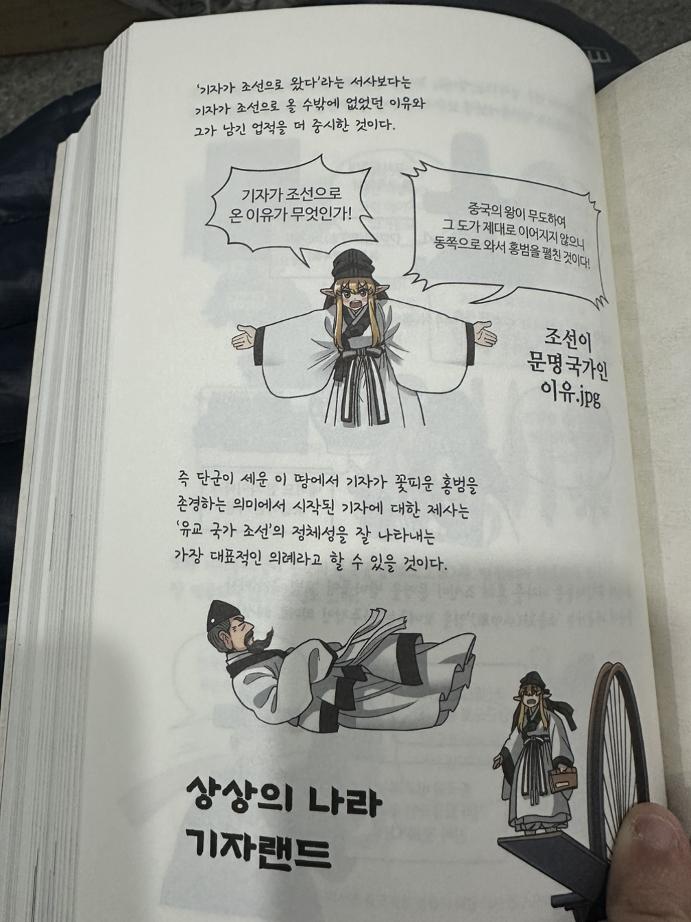 작가 우용곡 씨는 현재 군복무 중으로 잠시 연재를 휴재할 정도로 젊은 나이이며, 역사나 동양 문화 분야를 직접 전공한 이도 아니지만, 어렸을때부터 병약한 자신을 돌보기 위해 절과 무가 巫家를 찾아가던 할머니로부터 동양 역사에 관한 관심이 비롯되었다 했으며, 놀랍게도 엘프(!!)와 조선문화를 결합시켜 조선 엘프 라는 독특한 개념으로 역사에 입문하여, 다양한 복식 고증, 신앙에 이어 역사에 이르기까지 다양한 만화를 그리고 있다고 한다. 나는 아이가 잠시 아내와 함께 에코랜드에서 놀 동안 그곳 도서관에서 이 책을 발견하고 후다닥 읽었는데, 개성있는 만화체는 둘쨰치고, 전인혁 선생이 감수하고 이원 황사손께서 추천해준 내용 자체가 좋아서 충분히 소장 가치가 있을 것으로 보인다. 모처럼 맘편하게 즐겁게 읽을 수 있는 책을 하나 알게 되었다.
