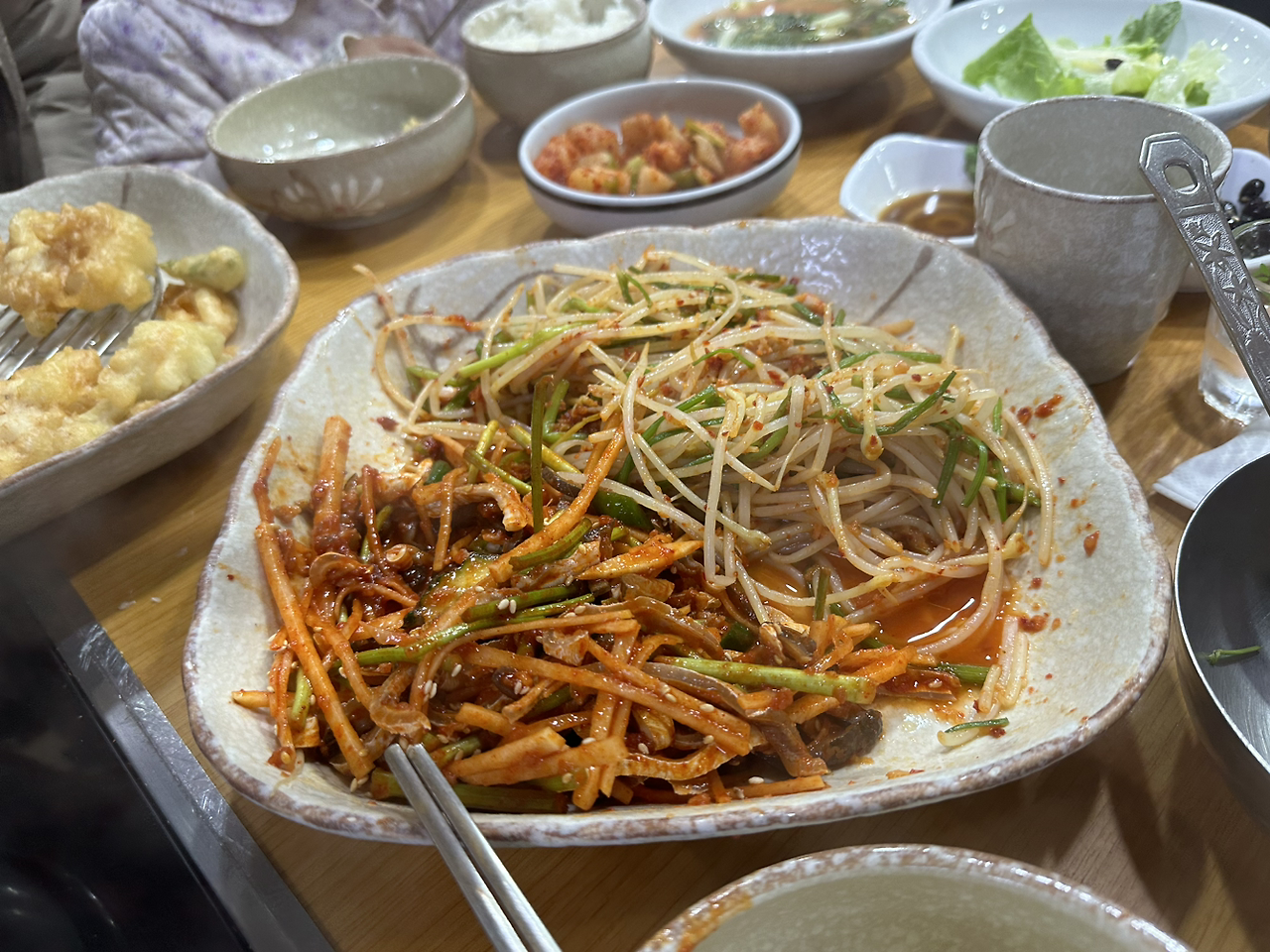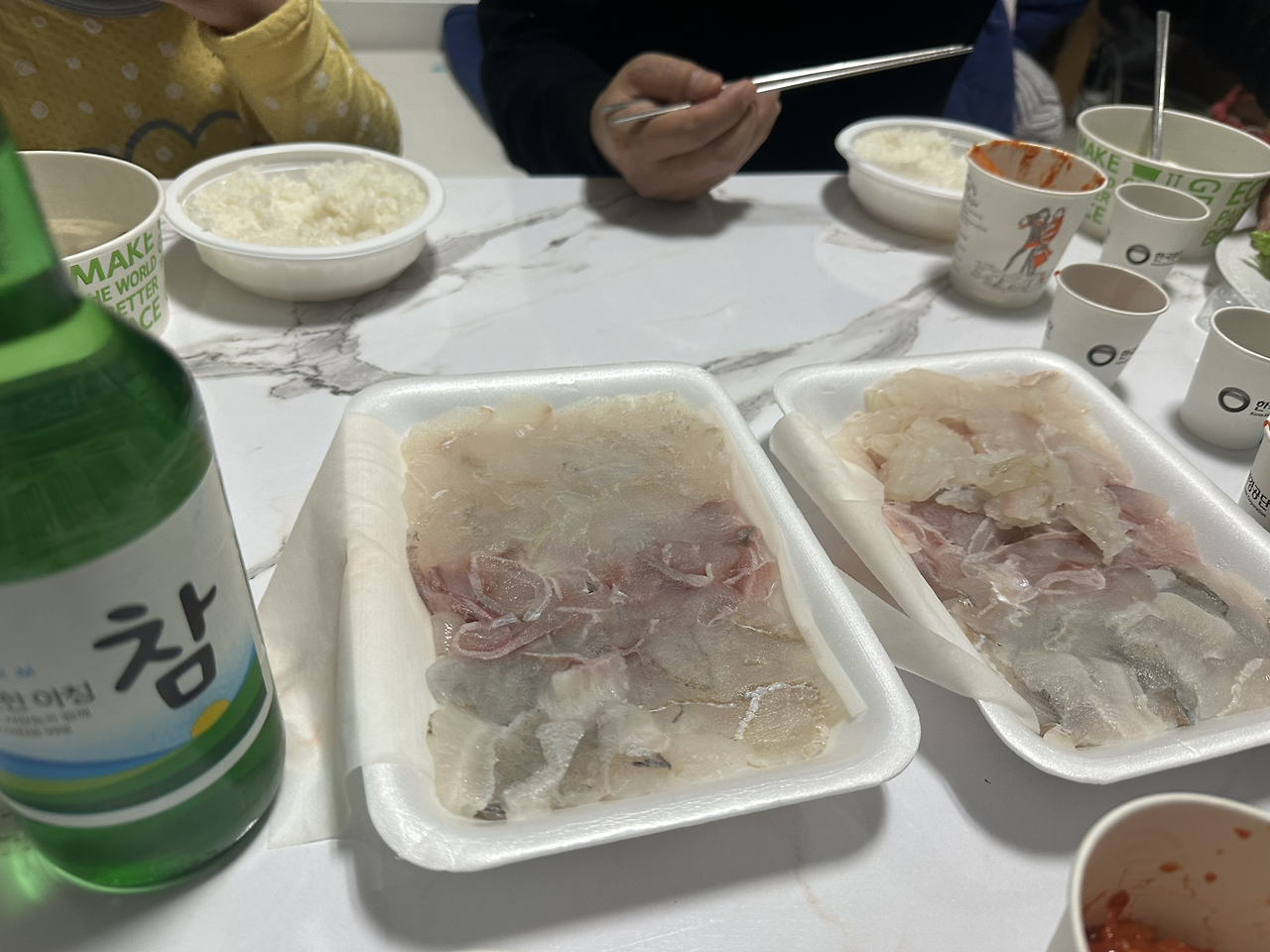 아버님께서는 많이 피곤하실텐데도, 부산에서 예까지 열차를 타고 오셔서 회를 네 접시나 싸오셔서 실컷 먹게 하셨다. 늘 먹던 회야 이루 말할 수 없이 고소했지만, 아버님께서 특별히 준비해주신, 뼈째 썬 붕장어회- 아나고덮밥은, 그리 먹어본 적이 없어서 더욱 놀랍고 맛있었다. 채소를 잘게 썬 뒤에 따뜻한 밥에 뼈째 썬 붕장어회를 가득 올려서 초장을 생각보다 많이 치고 회덮밥마냥 비벼먹는 것인데, 초장맛에 다 가려지지 않을까 싶지만, 구수한 밥 사이사이마다 비벼진 붕장어 살맛이 진하게 기름져서 조금도 밀리지 않았다. 이렇게 먹는 법도 있구나 싶어서 술이 절로 들어갔다. 아버님께 가성비 좋은 복어탕도 대접해드렸고, 아내의 소개로 미나리 생산 농가에 가서 그 유명한 유학산 청도 미나리 삼겹살도 먹었다. 살점이 두툼하고 쫄깃하게 씹히는 한돈 삼겹살도 맛있었지만, 삼겹살 기름에 숨만 살짝 죽도록 익힌 미나리는, 입에서 씹는 순간 풀대에서 채즙이 폭발하듯 터지고, 싱싱한 풀향이 가득 코를 뚫고 올라와서 삼겹살 없이도 맛있게 먹을 수 있어 또 술이 술술 들어갔다. 다만 아버님은 러시아인, 고려인들과 손발을 겨뤄야할 안산 대회를 많이 걱정하셨고, 절대 다치지 말기를 신신당부하셨다.