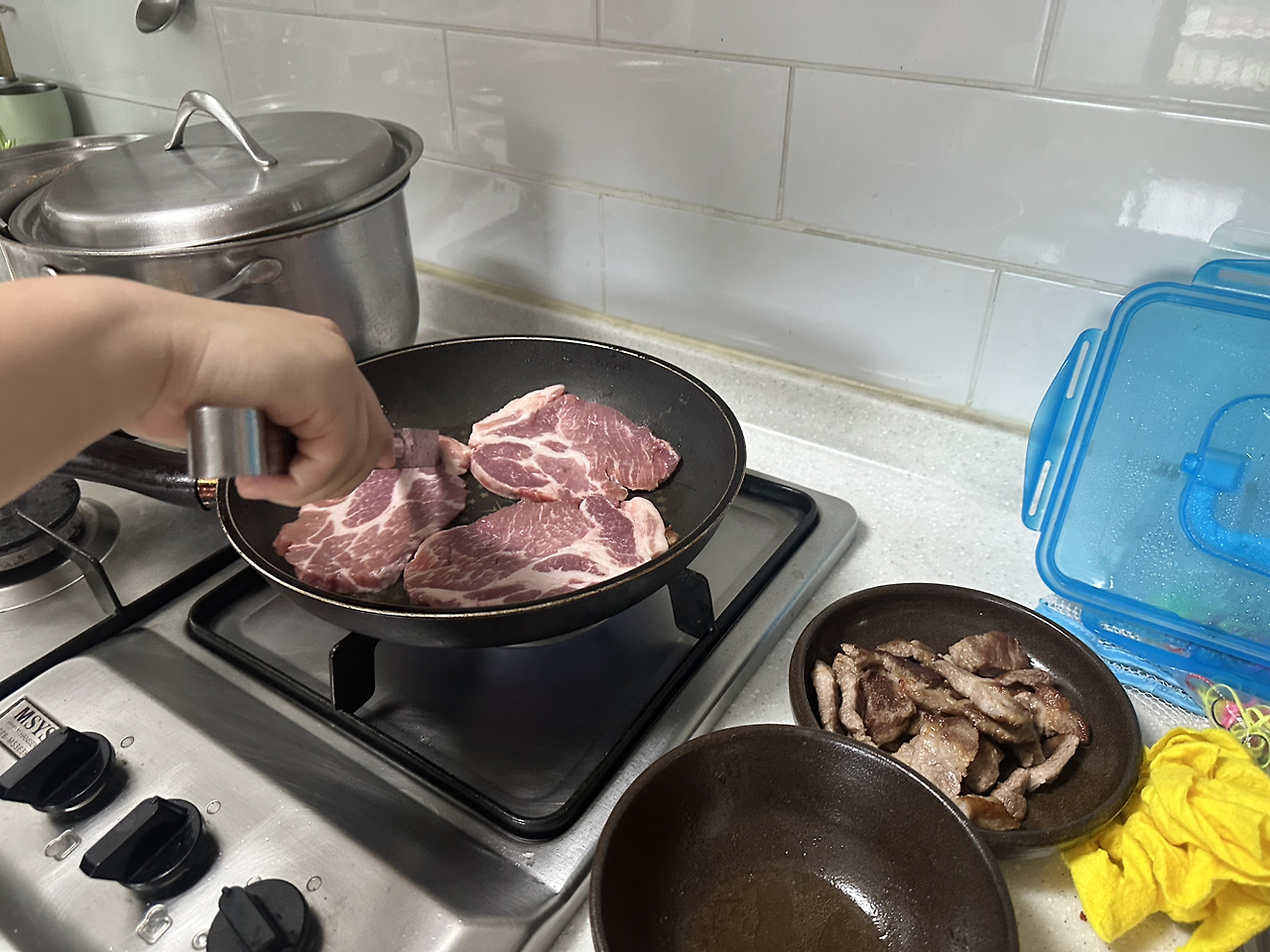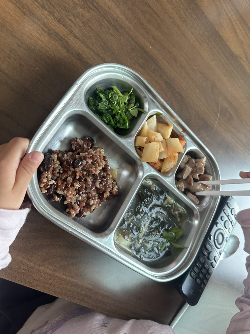 1. 아침밥먹여서 소은이 등원! ㅡ 무려 미나리목살구이!